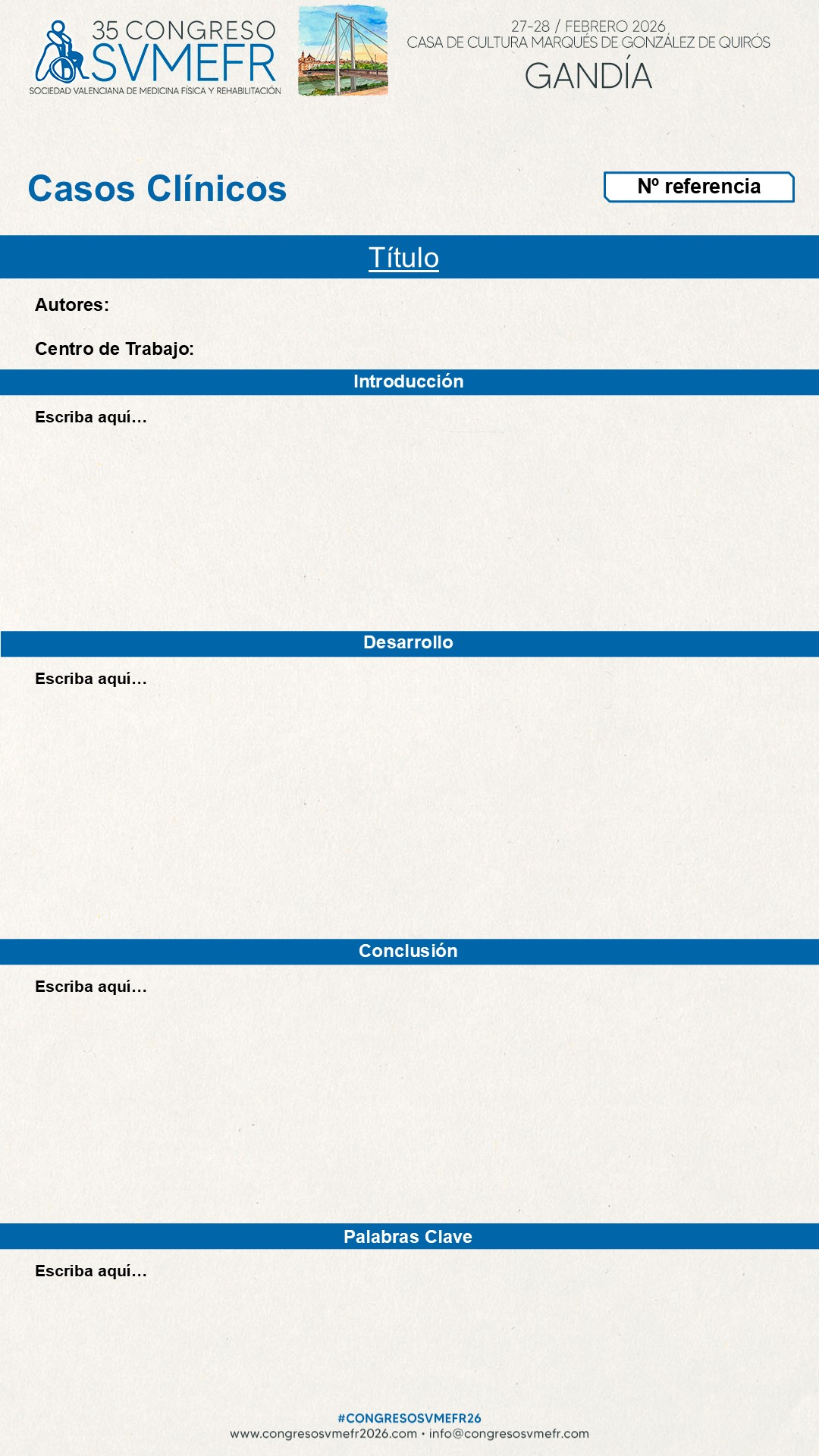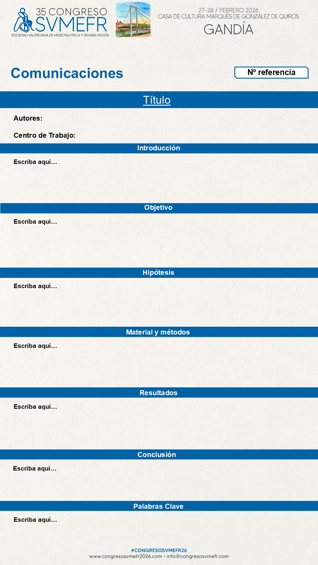 comunicaciones@congresosvmefr.com y remitir el poster a sustituir indicando la referencia del mismo.